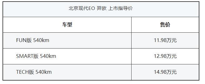 10月29日,北京現(xiàn)代EO 羿歐車型正式上市,售價11.98-14.98萬元。作為北京現(xiàn)代打造的首款純電平臺SUV,EO 羿歐純電續(xù)航里程540km。
